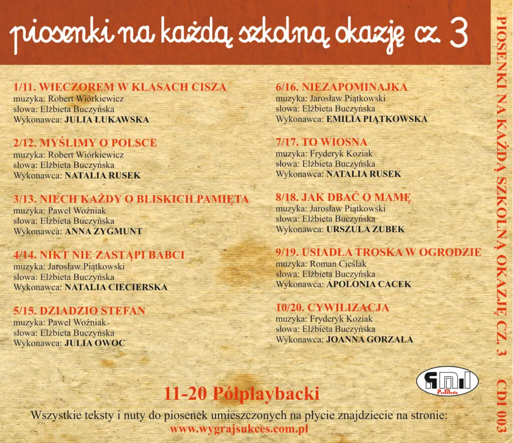 Na płycie znajdziecie półplaybacki do wszystkich piosenek!!! Przejdź do sklepu
