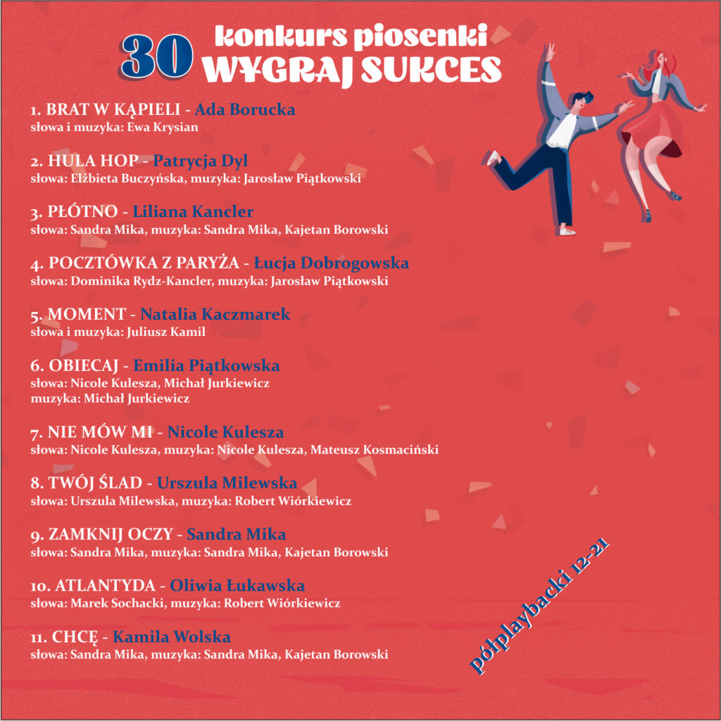 Playlista płyty 30. Konkurs Piosenki "Wygraj Sukcces"