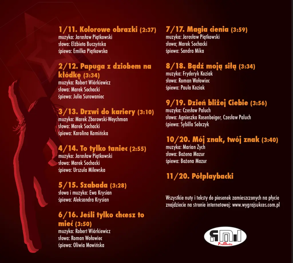 Na płycie znajdziecie półplaybacki (wersje instrumentalne) do wszystkich piosenek!!! Przejdź do sklepu