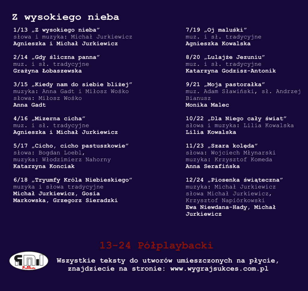 Na płycie znajdziecie półplaybacki (podkłady) do wszystkich piosenek!!! Przejdź do sklepu